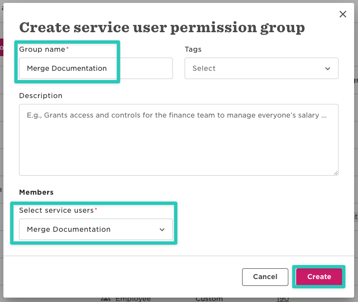Enter any Group name, select your new service user under Select service users, and click Create.