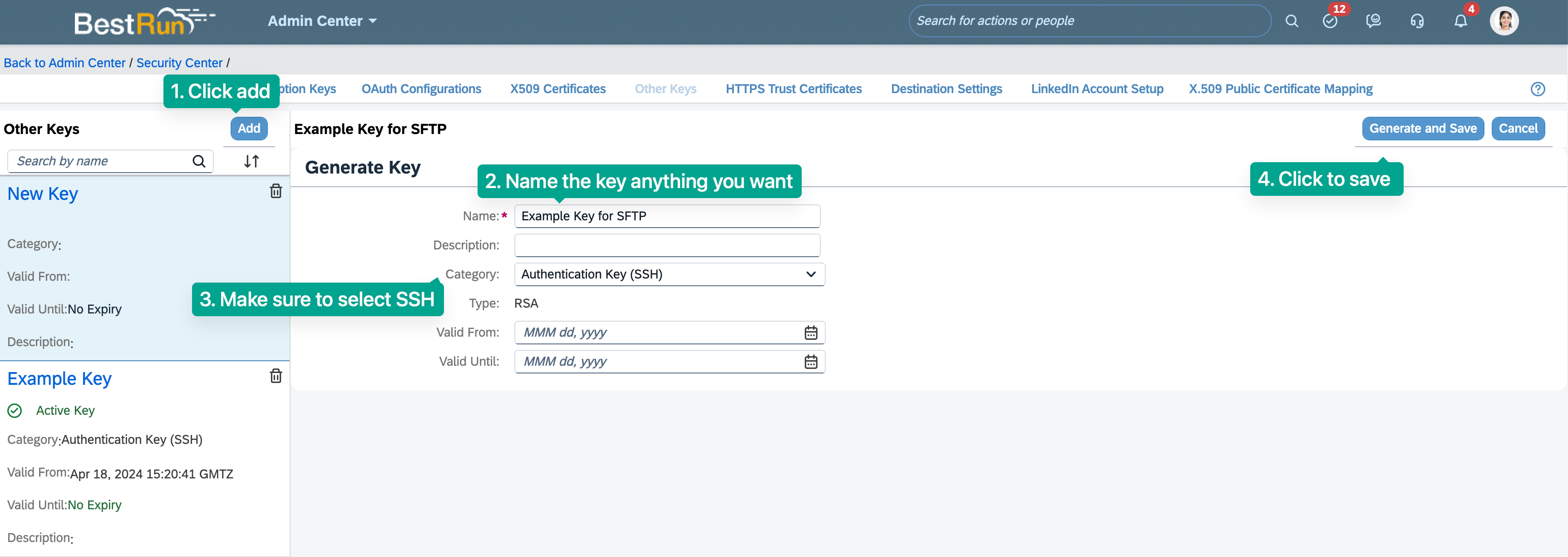 Press "Add" in the upper left corner then name the SSH Key