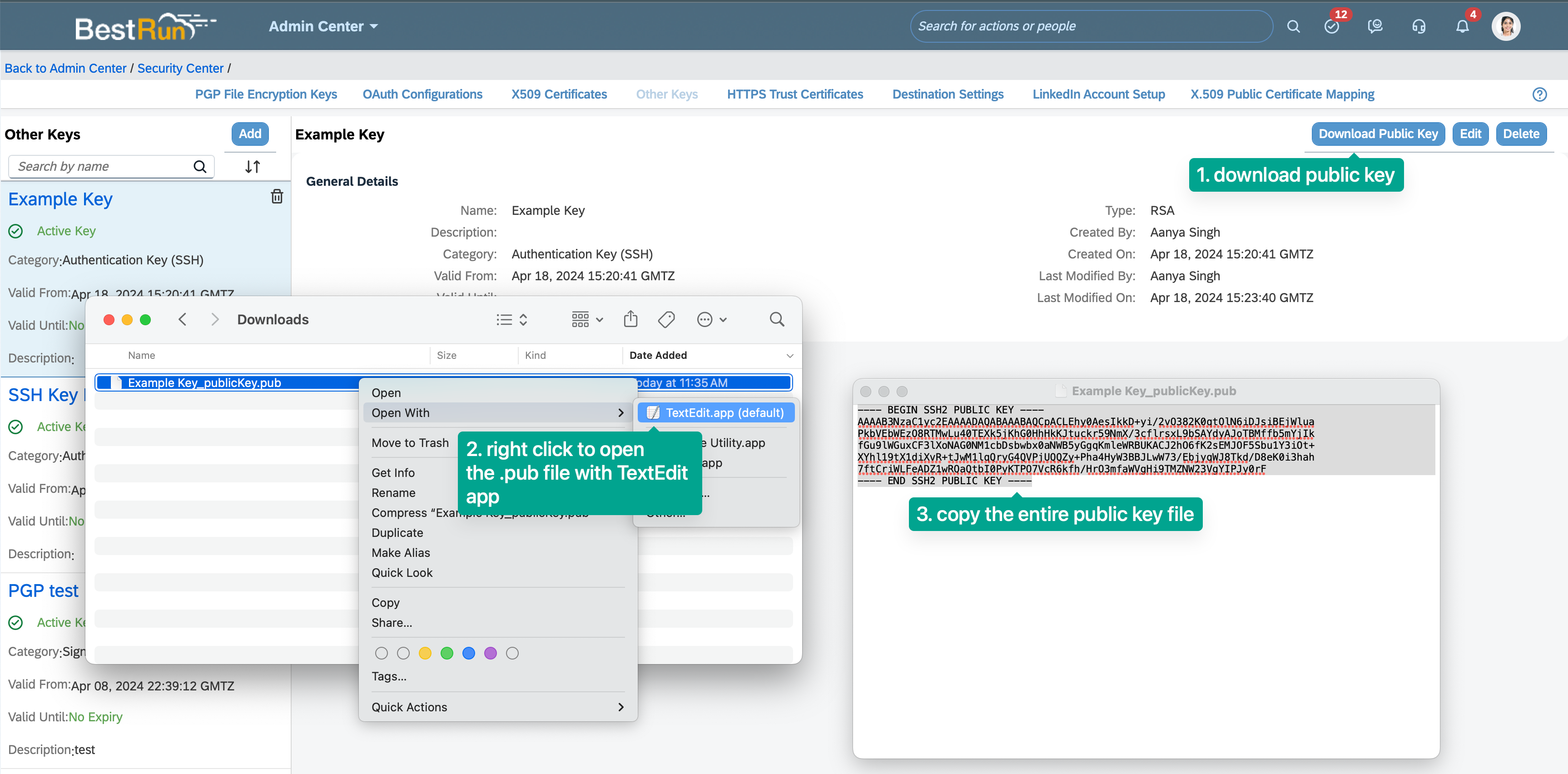 Download the Public Key from the key instance.