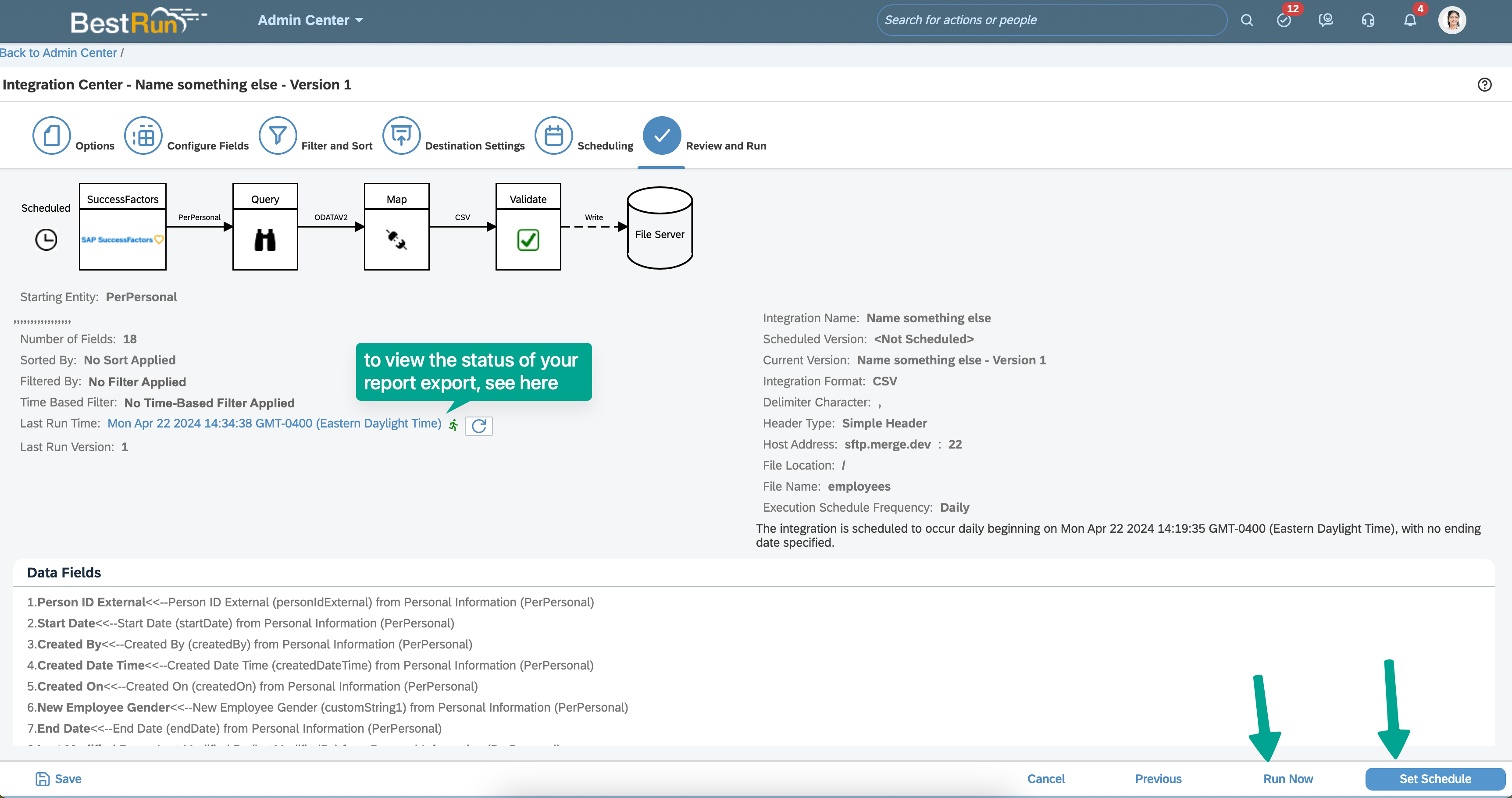 To send the file immediately select "Run Now"
