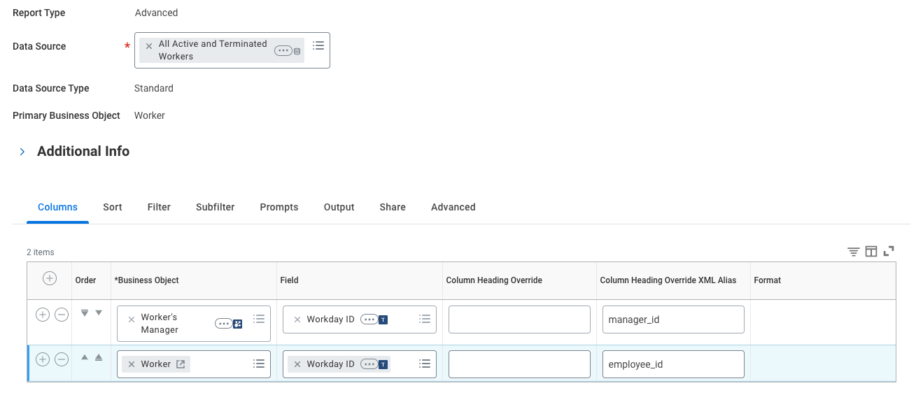 For Workday instances that generate Worker Workday ID and Manager ID in different formats, we recommend using the Business Object: Worker's Manager with Field: Workday ID.